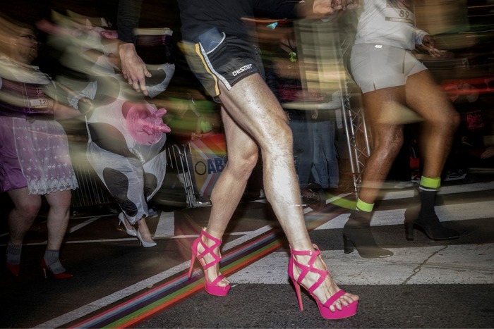 ყოველწლიური წინასაჰელოუინო მაღალქუსლიანი რბოლის მონაწილეები ფინიშის ხაზს კვეთენ — ვაშინგტონი, კოლუმბიის ოლქი, აშშ, 2025 წლის 28 ოქტომბერი.