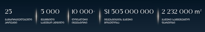 - დაამკვიდრა უძრავი ქონების მართვის თანამედროვე ტენდენციები საერთაშორისო მენეჯმენტ კომპანიებთან თანამშრომლობით, რითაც ფუნდამენტურად შეცვალა საინვესტიციო უკუგების მნიშვნელობა და მასშტაბი საქართველოში.