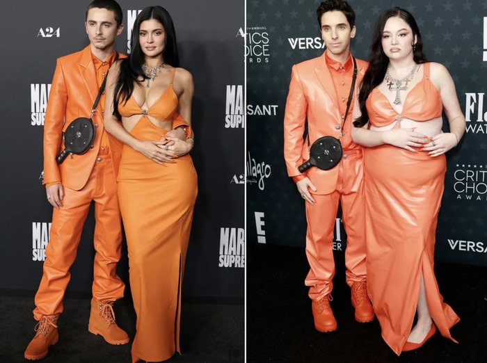 ამავდროულად, მეგან სტალტერმა და მისმა Hacks-ის პარტნიორმა პოლ უ. დაუნსმა გაცილებით თანამედროვე მომენტს მიაგეს პატივი, მათ ზუსტად გაიმეორეს ტიმოთი შალამესა და კაილი ჯენერის ლუქი დეკემბერში, Marty Supreme-ის პრემიერაზე ჩაცმული კოორდინირებული ნარინჯისფერი სამოსი.