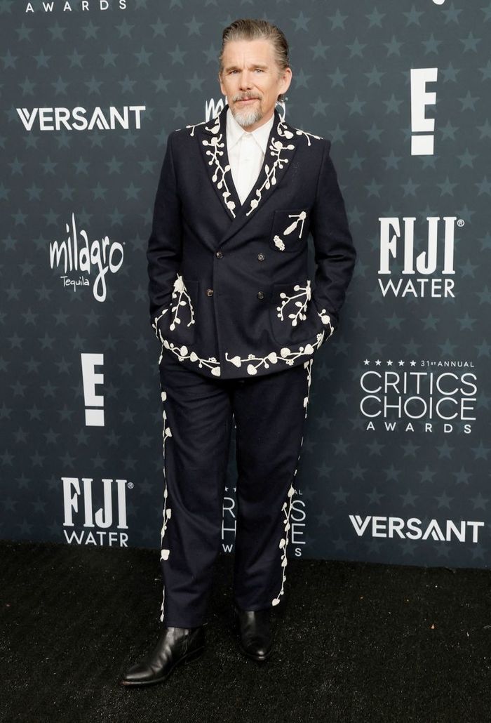 ითან ჰოუკი წითელ ხალიჩაზე Bode-ის ნაქარგი, ორბორტიანი კოსტიუმით გამოჩნდა: