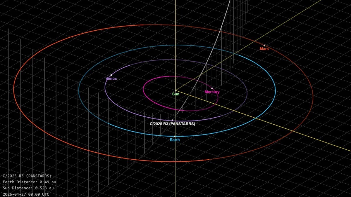 C/2025 R3 ჩვენს ვარსკვლავთან უახლოეს ორბიტალურ წერტილამდე (პერიჰელიუმი), მისგან 76.3 მილიონ კილომეტრ მანძილამდე, 20 აპრილს მიაღწევს; 27 აპრილს უკვე დედამიწის ჯერი დადგება, რა დროსაც ჩვენ შორის დისტანცია 70.8 მილიონი კილომეტრი იქნება. შედარებისთვის, ეს მთვარესთან დისტანციას 180-ზე მეტჯერ აჭარბებს.