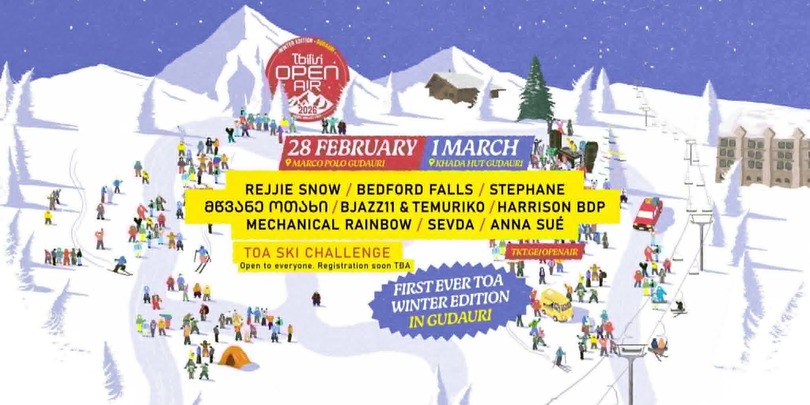 Tbilisi Open Air 2026: Winter Edition გუდაურში წარმოგიდგენთ ახალ ფესტივალ — Tbilisi Open Air: Winter Edition-ს, რომელიც 2026 წლის ზამთრის ბოლოსა და გაზაფხულის პირველ დღეს (28 თებერვალი - 1 მარტი), გუდაურში ჩატარდება.