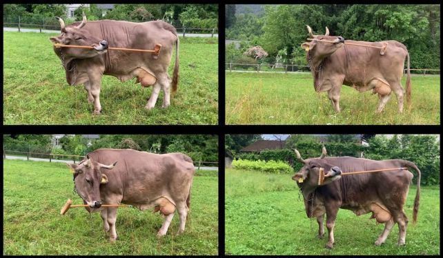 ისტორიაში პირველად, აღბეჭდეს ძროხა, რომელიც საგანს იყენებს