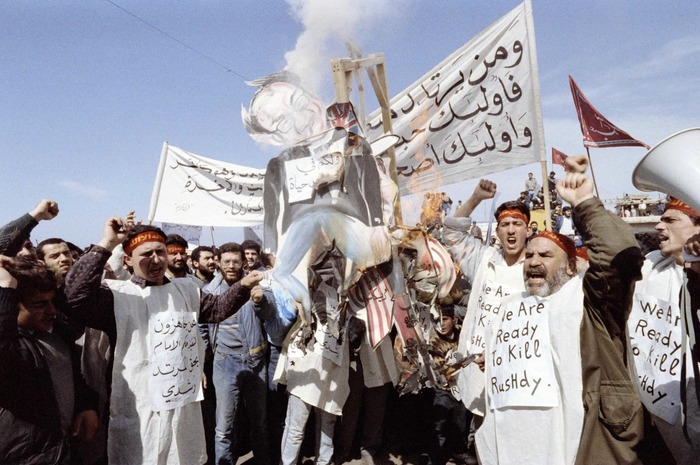 ირანის მხარდამჭერი ჰეზბოლას ფუნდამენტალისტები 1989 წელს სალმან რუშდის ფიგურას წვავენ.