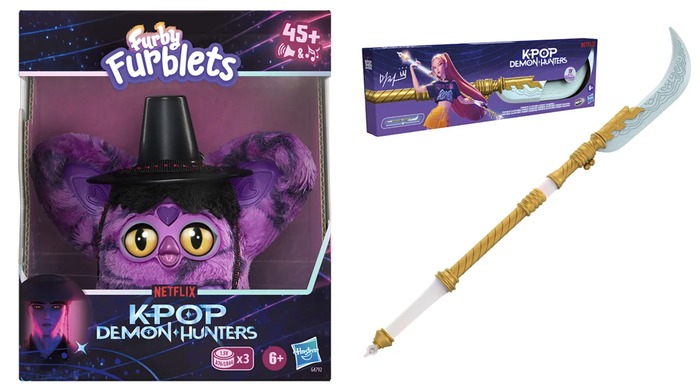 Hasbro-მ წარმოადგინა NERF-ის სათამაშოები, რომლებიც Huntrix-ის დემონებთან ბრძოლის იარაღებზეა დაფუძნებული, ასევე ორი Furby Furblet. ერთ-ერთი Furblet შექმნილია Derpy Tiger-ის მიხედვით — პერსონაჟის, რომელიც განსაკუთრებით პოპულარულია ონლაინ, როგორც ბავშვებში, ისე უფროსებში. მეორე კი ფილმის რთული ხასიათის მთავარი გმირის, ჯინუს მიხედვითაა შექმნილი, რომელიც ბიჭების ჯგუფის Saja Boy-ის წევრია. თითოეულ Furby-ს აქვს 45-ზე მეტი ინტერაქტიული ხმა, თემატური აქსესუარები და საკიდი ბრელოკები.