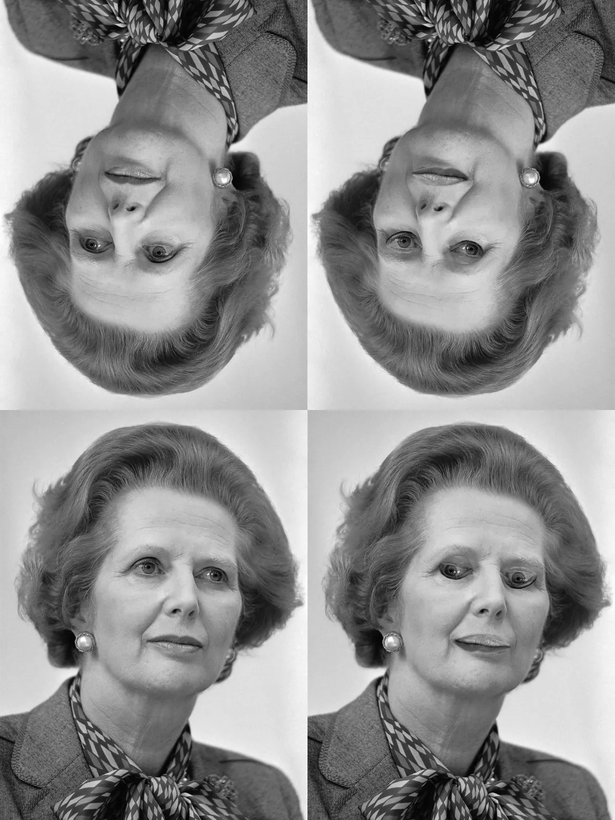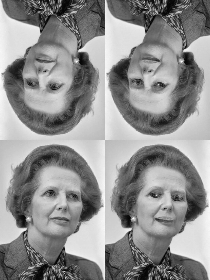მარგარეტ ტეტჩერის ჩვეულებრივი და დამახინჯერბული ფოტო.