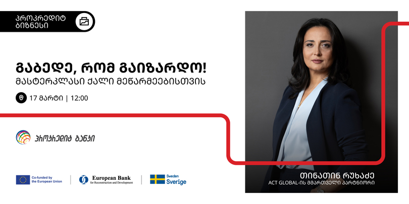 მის.: პროკრედიტ ბანკის სათაო ოფისი, ალ. ყაზბეგის 21