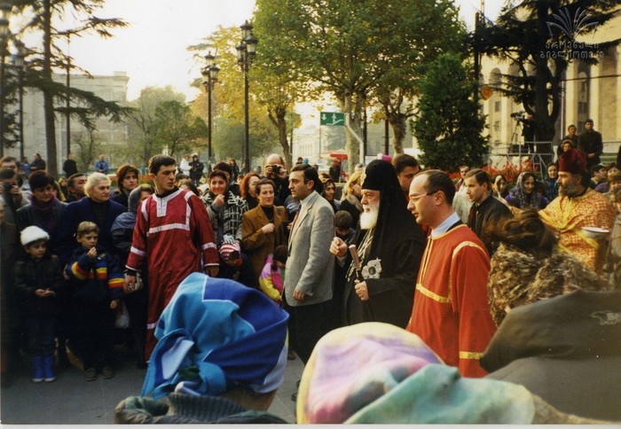 ილია მეორე მრევლთან ერთად ქაშვეთის ეკლესიასთან