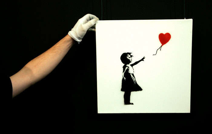2018 წელს, ლონდონში, Sotheby’s-ის ხმაურიან აუქციონზე, ბენქსის ნამუშევარი გოგონა ბუშტით 1.4 მილიონ დოლარად გაიყიდა. რამდენიმე წამში, ჩარჩოში დამონტაჟებულმა მოწყობილობამ, რომელიც თავად არტისტმა შექმნა, ნახატი ნაწილობრივ დააქუცმაცა. ნამუშევარს სახელი შეეცვალა და სიყვარული ნაგვის ურნაშია ეწოდა, სამი წლის შემდეგ კი ის დაახლოებით 25 მილიონ დოლარად გაიყიდა.