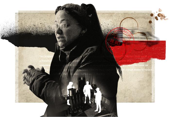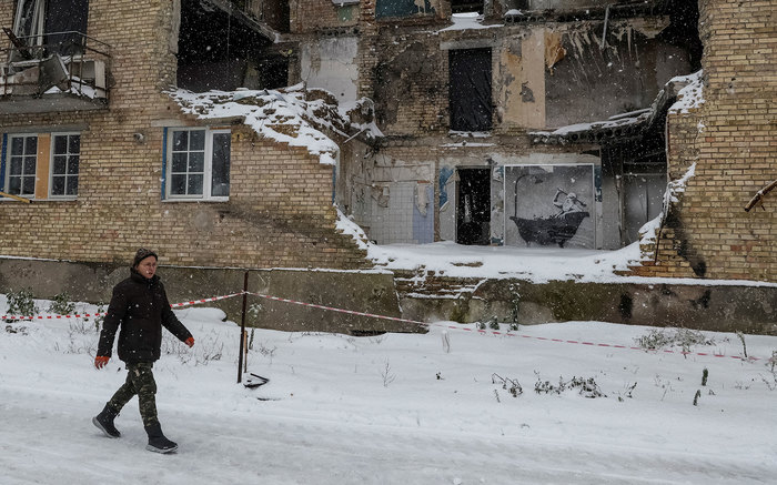 2022 წლის მიწურულს, კიევის მახლობლად მდებარე ამ სოფელში, დაბომბილ საცხოვრებელ კორპუსთან სასწრაფო დახმარების მანქანა გაჩერდა. იქიდან სამი ადამიანი გადმოვიდა. ერთს ნაცრისფერი ჰუდი ეცვა, მეორეს ბეისბოლის ქუდი ეხურა. სახე ორივეს ნიღბით ჰქონდა დაფარული.