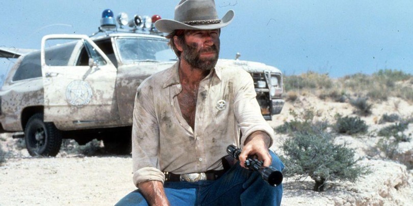 ჩაკ ნორისი დაუმორჩილებელი ტეხასელი რეინჯერის როლში, კადრი 1983 წლის ფილმიდან მარტოხელა მგელი მაკქუეიდი