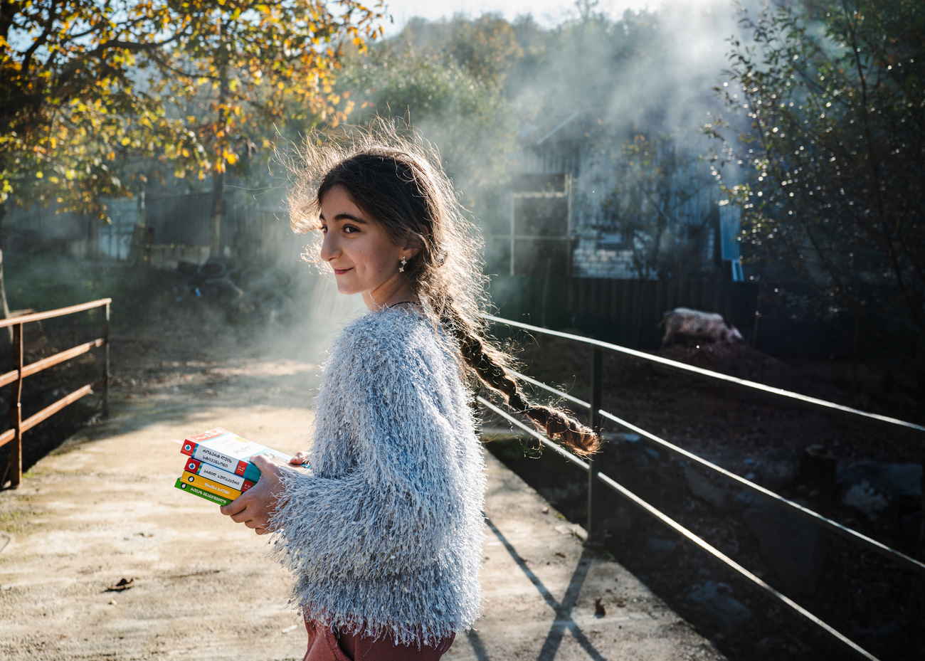 "სოფლის გზაზე შეგვხვდა გოგო, რომელსაც ნაოცნებარი წიგნები გადავეცით. გოგოს ღიმილმა მაფიქრებინა, რომ წიგნი მის ხელში იმაზე ბევრად მეტს ნიშნავდა, ვიდრე ჩვეულებრივი საჩუქარი ნიშნავს ხოლმე. პროექტის მთავარი ამბავი ჩემთვის სწორედ ესაა — ამ პატარა ადამიანების სახეებზე წიგნებიდან არეკლილი იმედიანი შუქის დანახვა", — იხსენებს ფოტოგრაფი ანა ჭუმბურიძე.