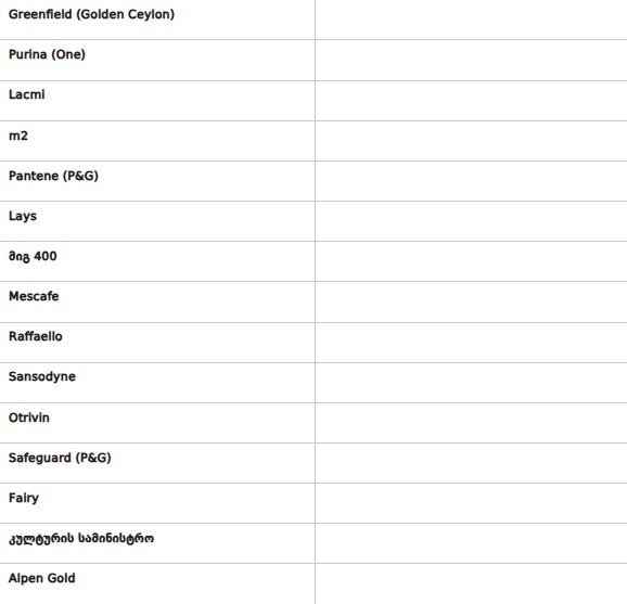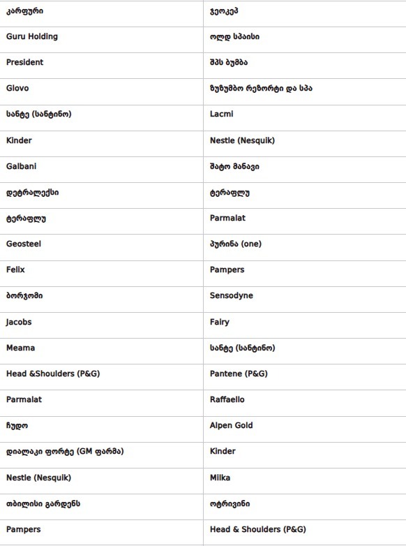 ლდება", — წერს TI და იმ ბრენდების ჩამონათვალს აქვეყნებს, რომლებიც რეკლამას ათავსებენ სანქცირებულ "იმედსა" და "პოსტვზე".
