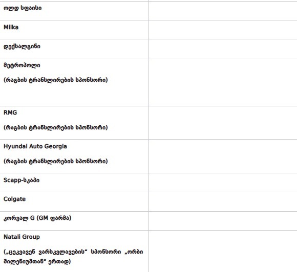 "იქიდან გამომდინარე, რომ კომპანიებს შორის დადებული სარეკლამო მომსახურების ხელშეკრულებები საჯარო არ არის, ოფიციალური მონაცემების გამოქვეყნებამდე, რთულია როგორც სარეკლამო დროის შესყიდვაში გადახდილი თანხის გამოთვლა, ასევე იმის დადგენა თუ რა ვადით აქვთ კომპანიებს ეს მომსახურება ნაყიდი. ამ მომენტისთვის არც ის არის ცნობილი, რომელი მათგანი აპირებს მათთან თანამშრომლობის გაგრძელებას. მათ ამის შესახებ ოფიციალური განცხადებები ამ დრომდე არ გაუკეთებიათ. ამ მხრივ არსებული სურათი მეორე კვარტლის მონაცემების გამოქვეყნების შემდგომ გახდება ნათელი.