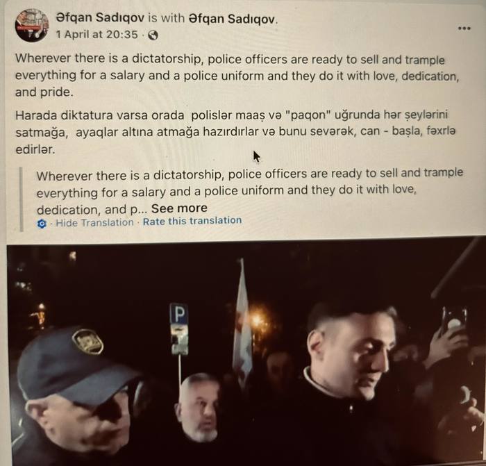 მოგვიანებით გაირკვა, რომ აზერბაიჯანელი ჟურნალისტის დაკავების მიზეზი "სოციალურ ქსელში პოლიციელის მიმართ შეურაცხყოფის ფაქტი" გახდა.