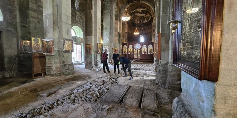 ცნობისთვის, გუშინ, 20 აპრილს სოციალურ ქსელში გავრცელდა ვიდეო, რომელშიც ჩანს, როგორ ყრიან იატაკს მე-5 საუკუნით დათარიღებული ბოლნისის სიონის ტაძარში ბურღის გამოყენებით.