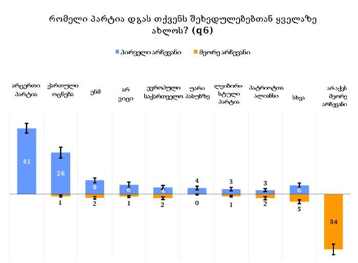 გამოკითხულთა 41 პროცენტის განცხადებით, მათ შეხედულებებთან არც ერთი პარტია არ დგას.
