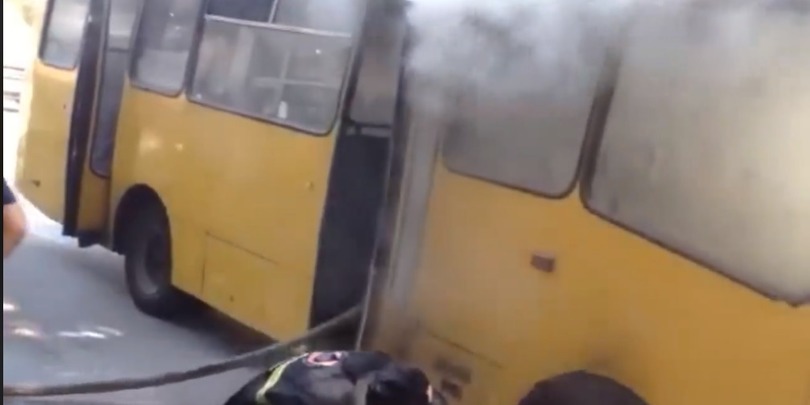 თბილისში ყვითელ ავტობუსს ცეცხლი გაუჩნდა
