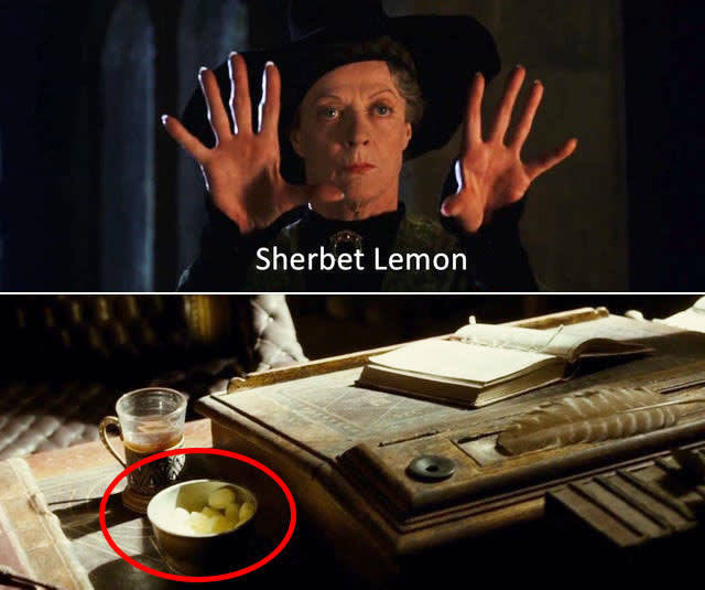 დამბლდორის კაბინეტის უცნაური პაროლი "ლიმონის შაქარყინული" ხომ კარგად გახსოვთ? მაგრამ შენიშნეთ, რომ ეს შაქარყინული დამბლდორს მაგიდაზე უდევს?