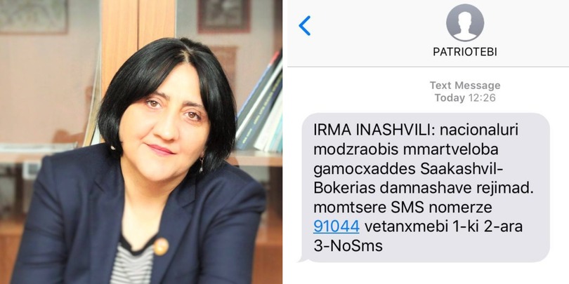 მოქალაქეების ნაწილი პარტია პატრიოტთა ალიანსისგან SMS-შეტყობინებებს იღებს, ტექსტით: "ნაციონალური მოძრაობის მმართველობა გამოცხადდეს სააკაშვილი-ბოკერიას დამნაშავე რეჟიმად. 1 — კი, 2 — არა, 3 — NoSMS".