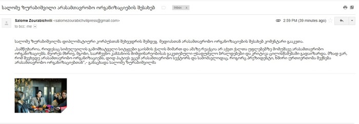 შეტყობინებაში არის სალომე ზურაბიშვილის შემდეგი ციტატა: