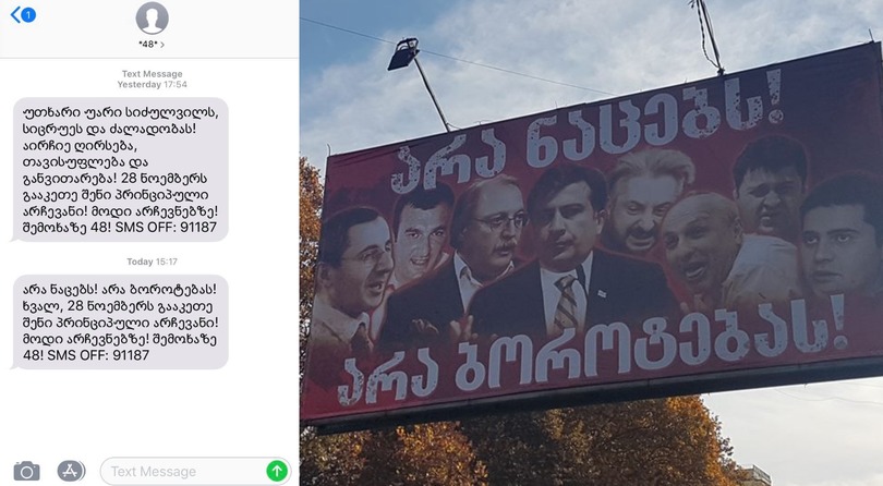 "არა ნაცებს! არა ბოროტებას! ხვალ, 28 ნოემბერს გააკეთე შენი პრინციპული არჩევანი! მოდი არჩევნებზე! შემოხაზე 48!" — ვკითხულობთ შეტყობინებებში.