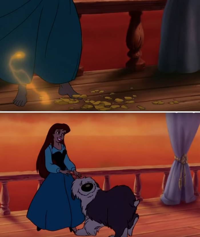 3. არიელი კი უეცრად ფეხსაცმლით ჩნდება. არადა, მანამდე ის ფეხშიშველი ჩანდა კადრში
