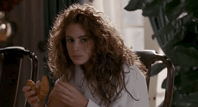4. ჯულია რობერტსის პერსონაჟი, ვივიენი საუზმეზე უგემრიელეს კრუასანს მიირთმევს