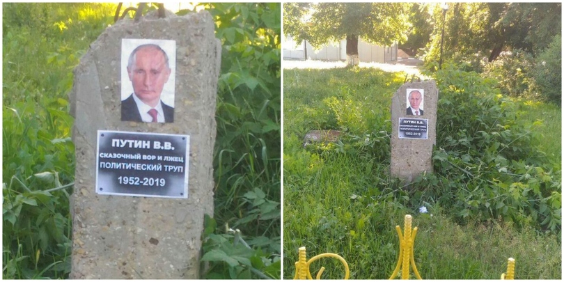 რუსეთის ქალაქ ვორონეჟში პრეზიდენტ, ვლადიმერ პუტინის საფლავის ქვა დაუდგეს. ქვაზე აწერია "წარმოუდგენელი ქურდი და მატყუარა. პოლიტიკური გვამი". გარდაცვალების წლად კი 2019 მითითებული.