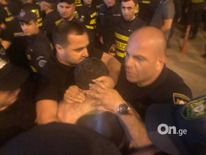 კანცელარიასთან პოლიცია კონტრაქციის მონაწილეებს აკავებს. როგორც ადგილიდან ჟურნალისტები იუწყებიან, პოლიციამ დაახლოებით 10-დან 15-მდე პირი გაიყვანა.