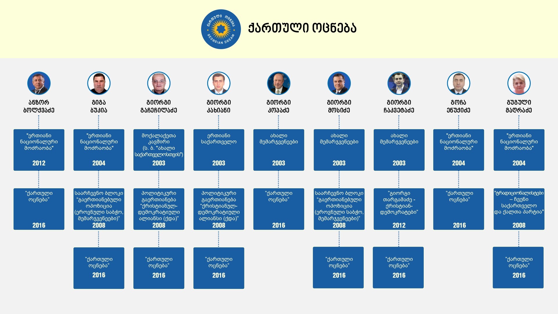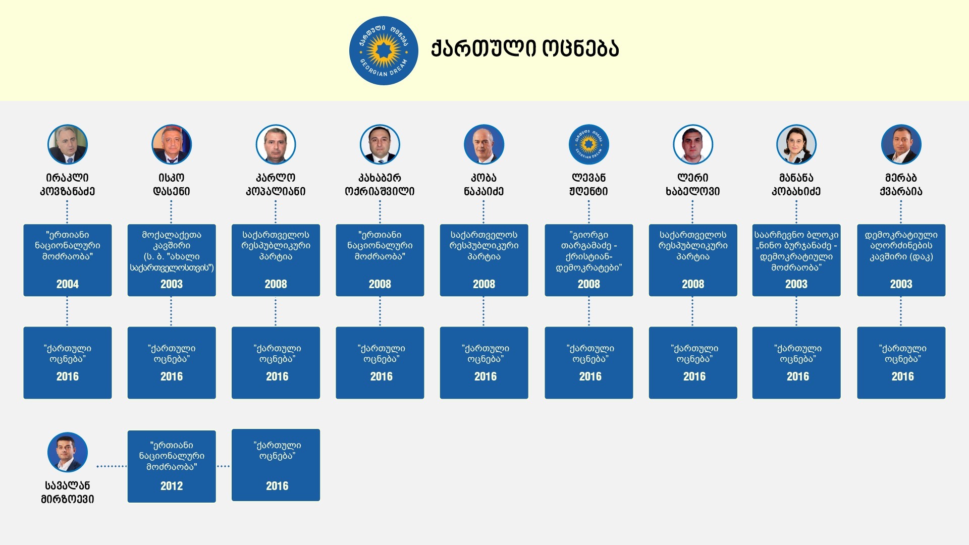 TI ოცნების პოლიტიკოსთა სიას აქვეყნებს, რომლებმაც რამდენიმე პარტია გამოიცვალეს