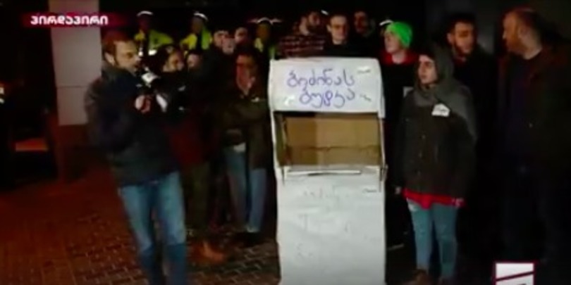 აქტივისტებმა ივანიშვილს ბიზნესცენტრთან "ბუტკა" მიუტანეს