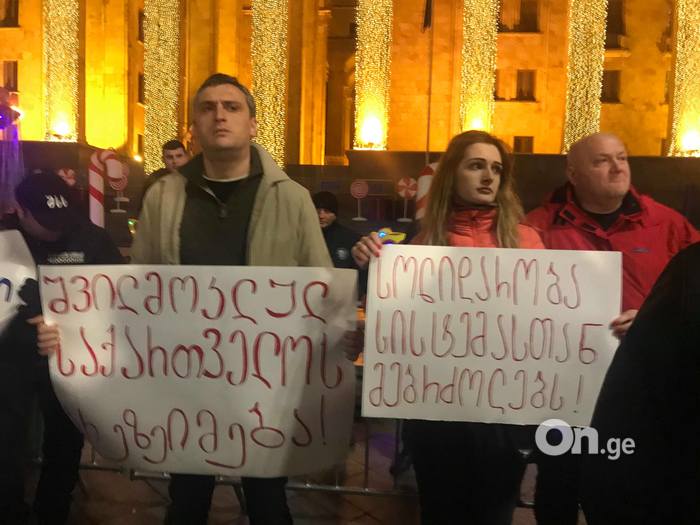 მაჩალიკაშვილისა და მამალაძის მხარდასაჭერად აქტივისტები ახალ წელს პარლამენტთან შეხვდნენ