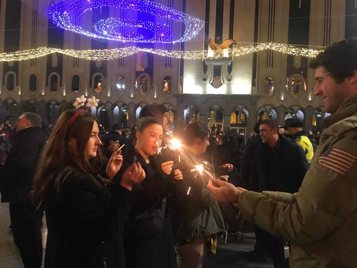 რუსთველის გამზირზე ხელისუფლების ქმედებების გასაპროტესტებლად შეკრებილმა აქტივისტებმა ერთმანეთს და პოლიციას ახალი წელი მიულოცეს.