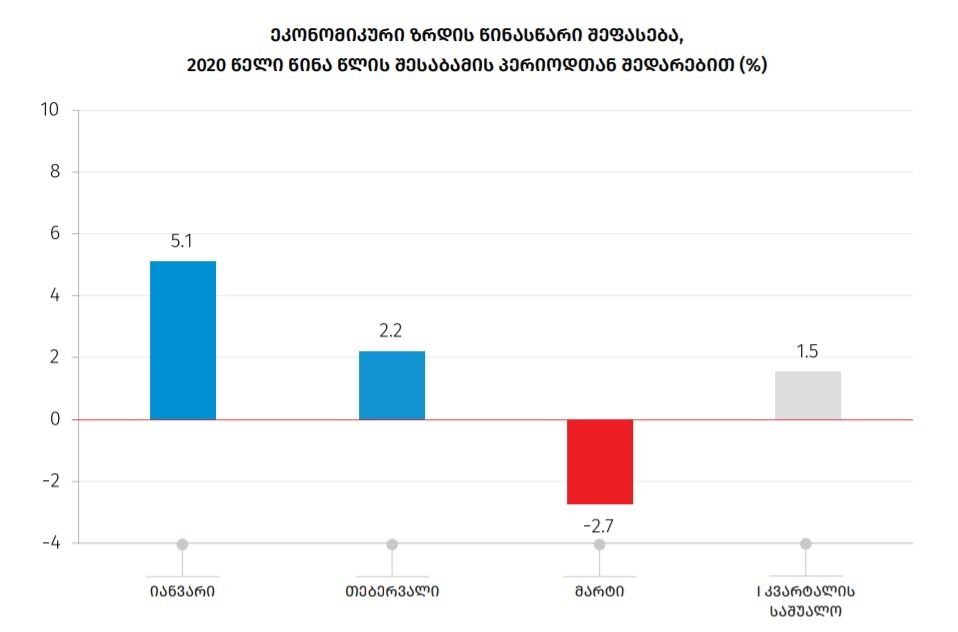 2020 წლის მარტში ეკონომიკა 2,7%-ით შემცირდა — საქსტატი