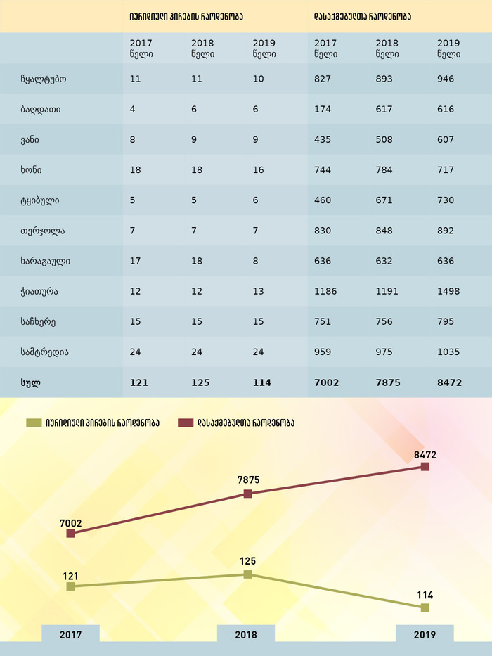 ორგანიზაციაში აცხადებენ, რომ იურიდიული პირების რაოდენობა შემცირდა, თუმცა, 2017 წელთან შედარებით, 2019 წელს დასაქმებულთა რაოდენობა 1 470-ით გაიზარდა. მათი ცნობით, ჯამურად ყველაზე მეტი — 1 498 დასაქმებული ჭიათურის მუნიციპალიტეტს ჰყავს, კერძოდ "გაერთიანებულ საბავშვო ბაღს".