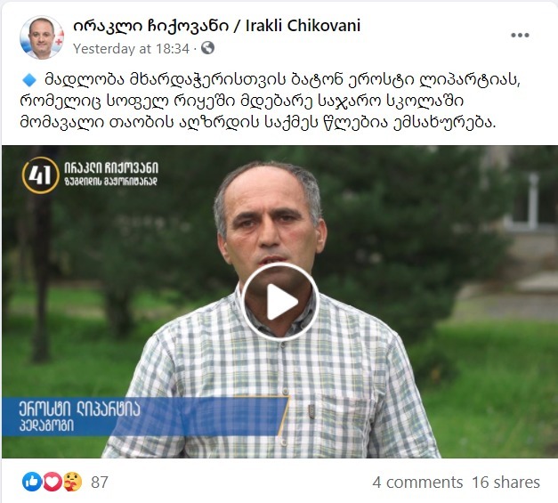 ფოტო: Facebook/ირაკლი ჩიქოვანი