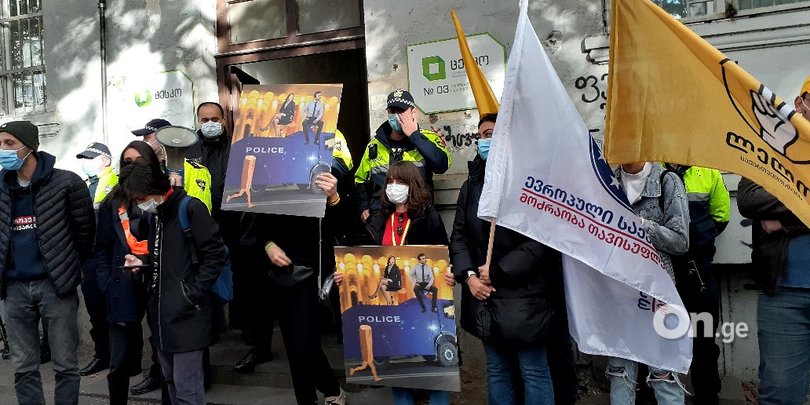 ვაკე-საბურთალოს საოლქო საარჩევნო კომისიასთან აქცია მიმდინარეობს