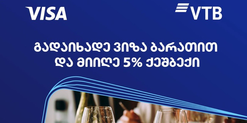 ვითიბი ბანკის Visa ბარათით გადახდისას, კვების ნებისმიერ ობიექტში, თანხის 5% უკან ბრუნდება.
