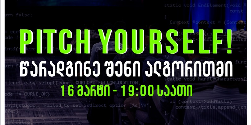 Pitch Yourself! — მასშტაბური Tech დასაქმების ფორუმია ბიზნესისა და ტექნოლოგიების უნივერსიტეტისგან, სადაც IT სპეციალისტებს საკუთარი ალგორითმის წარდგენა ადგილობრივ და საერთაშორისო მაღალტექნოლოგიურ კომპანიებთან შეეძლებათ. კონკურსი ჩატარდება 16 მარტს, 19:00 საათზე.