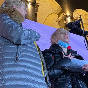 ის გამოვიდა სიტყვით, რადგან მხარი დაეჭირა თქვენს შეკრებას და მადლობა ეთქვა თქვენთვის. დიდი მადლობა ჩვენო მეგობრებო, მათ ყველას ვინც ყოველ საღამოს მოდის აქ ჩვენი ხალხის მხარდასაჭერად. დიდება უკრაინას!